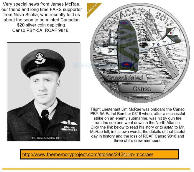 FARS is sad to report the loss of one of our "Honourary Flight Crew" from the First Flight of the restored Canso PBY C-FNJE, formerly known as RCAF 11094.