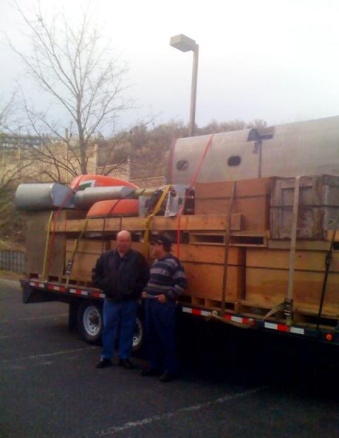 Photos below showing Don Wieben and Joe Gans, April 2011, just finished loading the last of the Canso PBY parts purchased last fall in Naniamo, BC. These parts had been stored in an old Sea-Can at the Naniamo Airport for several years.