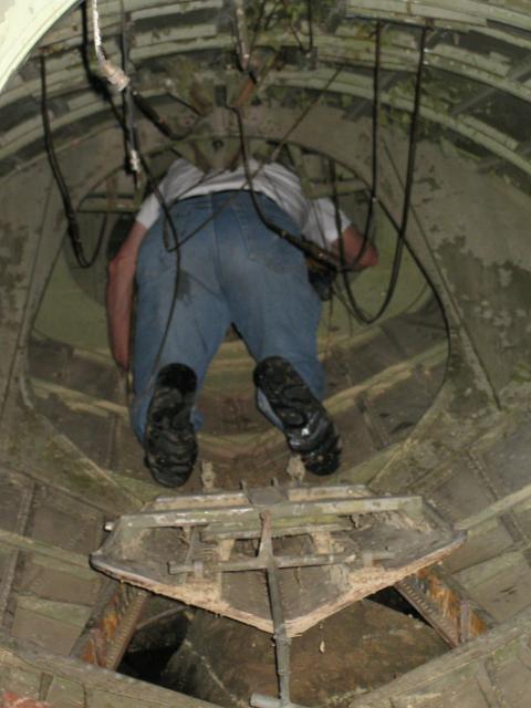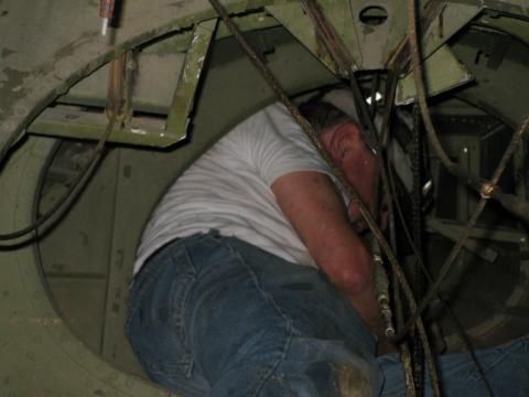 Testing the hydraulic systems on the Canso PBY - raising and lowering the wheels. The main wheel tires, weighing about 400 lbs. were removed to help with the lift and to check the brakes, bearings, etc. - everything looked good!