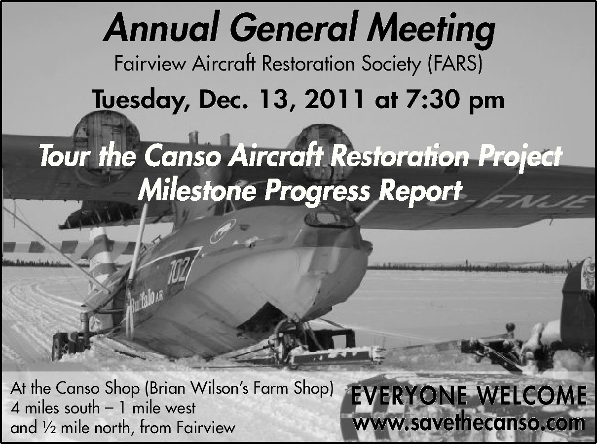 GREAT SUCCESS - July 25, 2010 FLY-IN BREAKFAST - First in 20 years at the Fairview Airport - 21 planes in from all directions - Canso Tours enjoyed by many! - Donations to the Canso Restoration Project - THANKS TO ALL!
