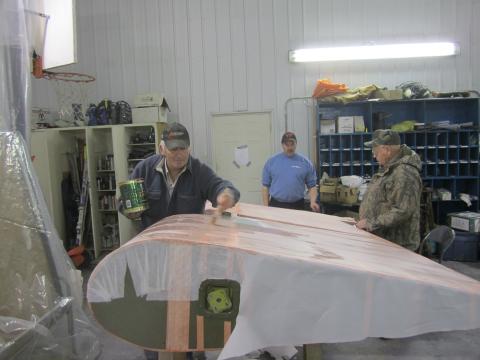 Throughout the winter of 2010/11, the Canso Crew spent many fun-filled hours preparing, covering and painting the rudder and elevators of the Canso.