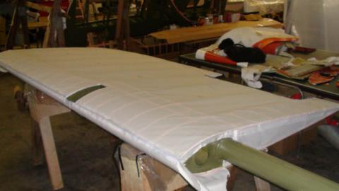 This page is dedicated to work involved in the replacement of fabric on all the control surfaces of C-FNJE. Nearly all the fabric was damaged during either the accident, the salvage from Sitidgi Lake, NWT or during transport of the aircraft some 2500 km to Fairview.