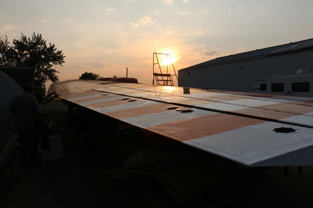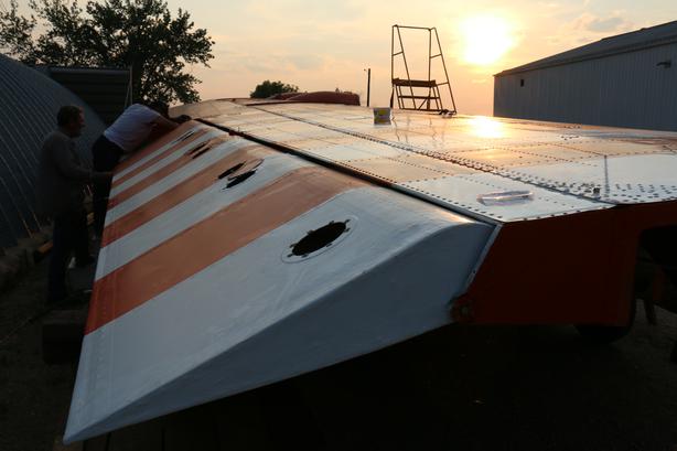 July, 2015 - As the sun sets in the Alberta sky we have the wing finally back in one piece - all 104 feet!!