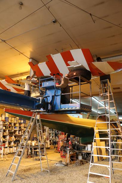 Photos above: Installing the elevators - flight control surfaces, which control the aircraft's pitch, and therefore the angle of attack and the lift of the wing