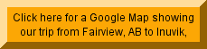 Approx. 2,750 km. by road to Inuvik and then 1500 km. on a NTCL barge up the MacKenzie River to Hay River, NWT - THEN 800 km. down the Mackenzie Highway by truck to Fairview, AB