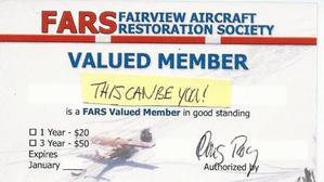 Membership Drive: January is Membership Renewal Month and we would be very pleased to have you renew or join the Fairview Aircraft Restoration Society!